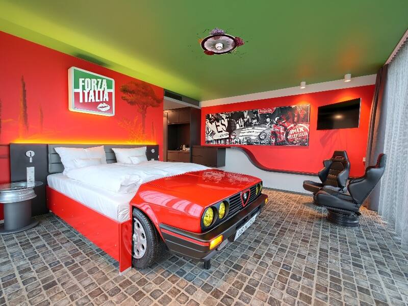 Y es quizás el soñado para los amantes de los autos, porque en sus habitaciones las marquesas están hechas con verdaderas carrocerías de automóviles de reputadas marcas.
