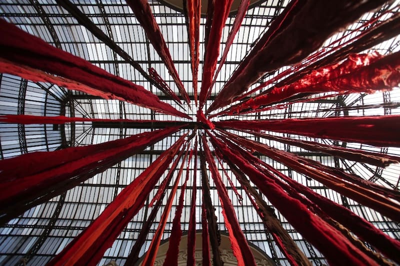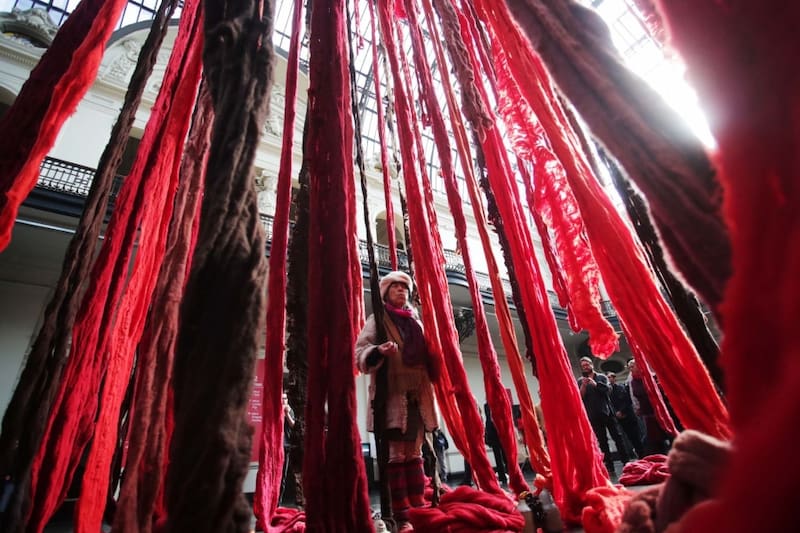 Quipu Menstrual (la sangre de los glaciares). Cecilia Vicuña, 2023. Foto: Mario Ruiz.