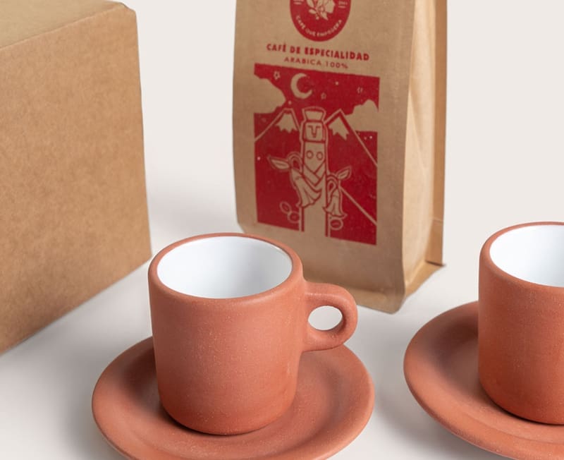 Como el que trae una colonia del bosque y una bufanda de alpaca blanca ($ 34.900) o el pack que trae dos tazas de cerámica de Gorbea y una bolsita de Café Femenino, comunidad de mujeres productoras de café ($ 21.900, en la foto).