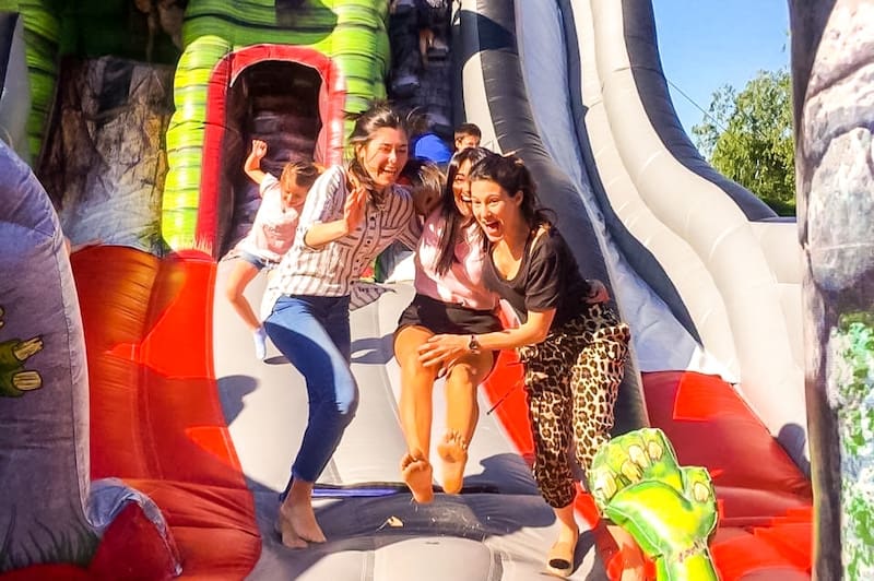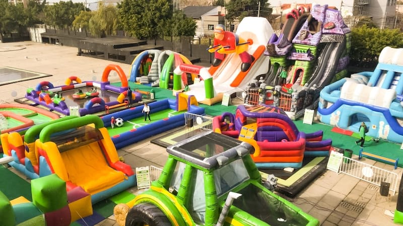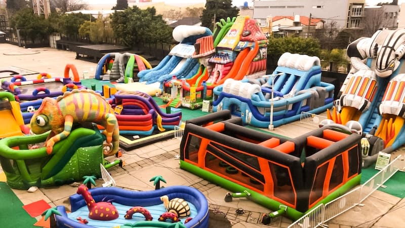 En total son 11 atracciones, aptas para niños y niñas de dos a 14 años, que incluye algunos de los toboganes de aire más grandes del mundo, muros de escalada y carreras de obstáculos, entre otros.