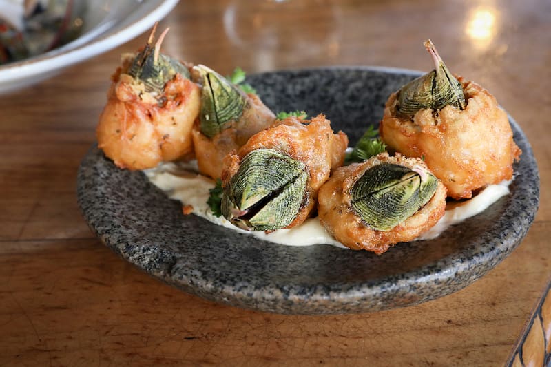 Y si se trata de las novedades de Squella, prueba las chochas ($ 12.500), hechas en una base de caldo de locos, con leche de tigre y salsa criolla de la casa; o los picorocos ($ 11.990), una maravilla difícil de encontrar en otros lados, que vienen fritos con salsa tártara.