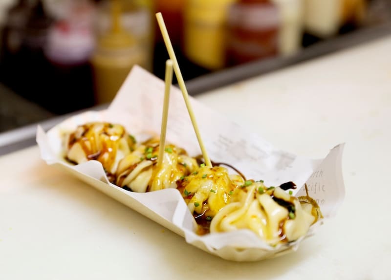 La mayoría de sus preparaciones son para para probar al paso, como los korean hot dogs, los perritos calientes al estilo coreano, muy populares en Seúl.