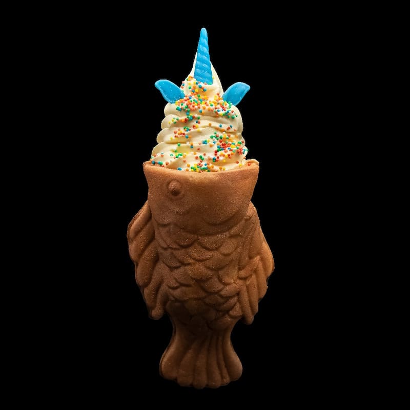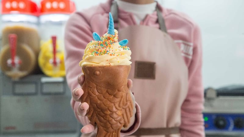 TaiyakiScl es un pastel japonés con forma de pez y es el nombre de esta heladería con inspiración japonesa que acaba de instalarse en el Patio Bellavista.