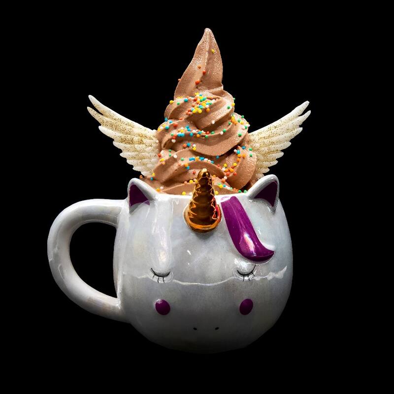 Ojo, que también puedes pedir el "vaso de unicornio" ($ 6.500), que viene con helado de chocolate y alas doradas. El vaso te lo llevas y por $ 2.000 puedes rellenarlo.