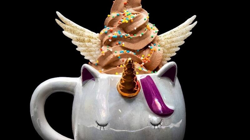 Y ojo, que puedes pedirlo también en el “vaso de unicornio” ($ 6.500), que viene con helado de chocolate y alas doradas.