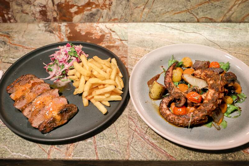 Otro podría ser el grilled Octopus ($ 13.900), que son tentáculos de pulpo grillados con papines confitados y tomates cherry asados, más romesco y ajo negro; o el udon a la carbonara ($ 12.900), una deliciosa pasta udon, con pork belly, yema de huevo, pecorino y guanciale.