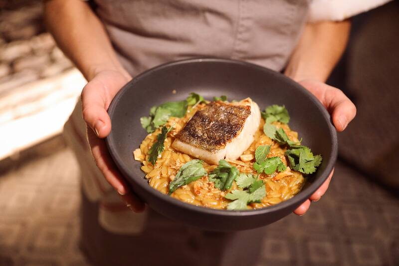 Además de una carta de platos, como la merluza austral con orzo y curry amarillo ($ 13.900), que viene con laksa de orzo, un tipo de pasta similar a un grano de arroz, leche de coco y lima kaffir, más un mix de hojas de cilantro, menta y albahaca.