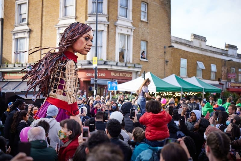 Como Amal, una marioneta de 3,5 metros de altura, que es parte del espectáculo The Walk y que traerá un mensaje que concientiza sobre el drama de los niños y niñas que huyen de la guerra.