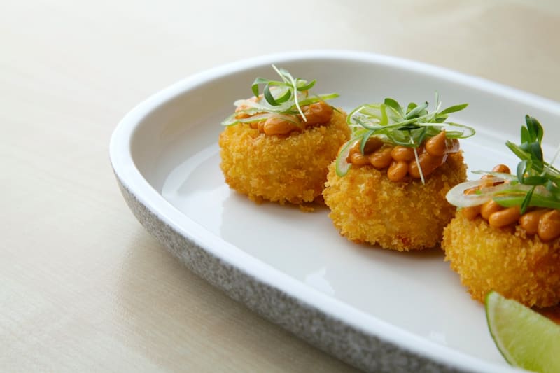O las croquetas de cangrejo, guisadas como un clásico chupe de jaiba ($ 12.800).
