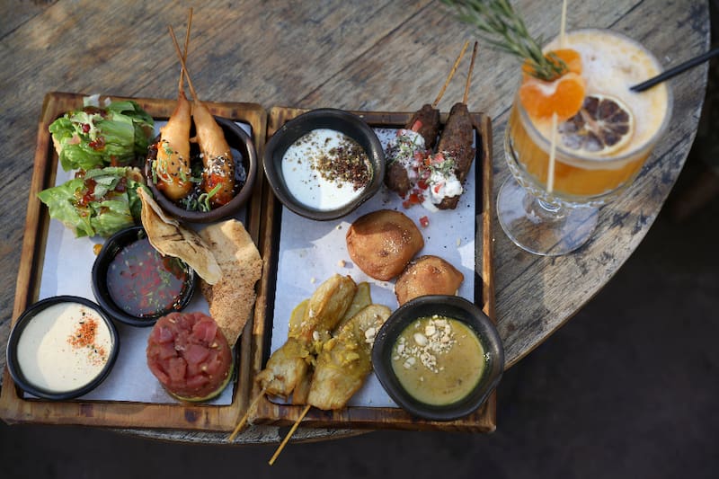 De hecho, el plus son sus agradables rincones, con brisa y una carta inspirada en los sabores del mundo, en especial asiáticos, con opciones para compartir como la Trilogia Zanzibar ($ 18.400), que trae empanadas Lamu de Tailandia; Satay de pollo y Kebabs de Cordero, típico de Medio Oriente con sus salsas de yogurt y maní.