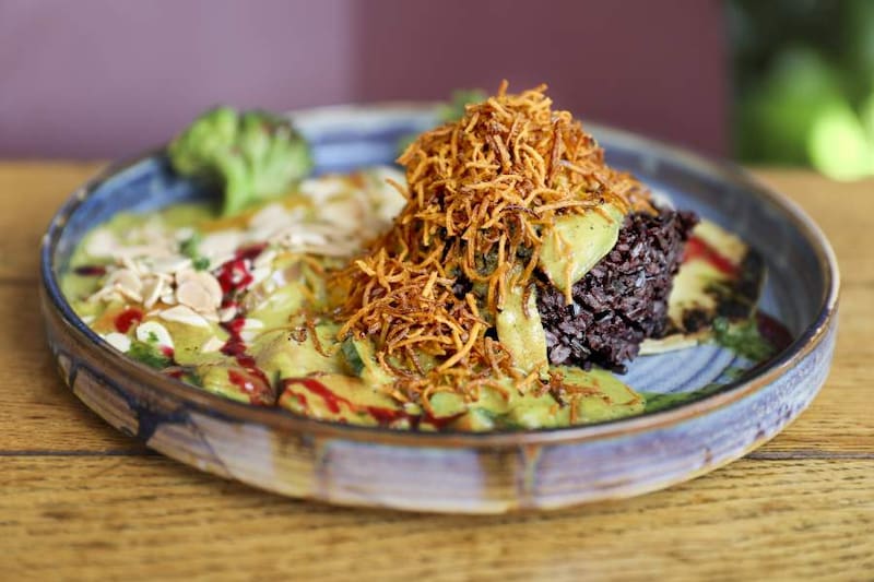 Y si bien su carta es en su mayoría vegetariana, los platos pueden convertirse a veganos.