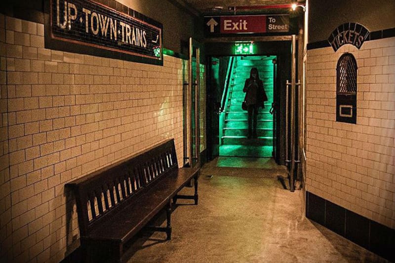Luego de que el guardia verifique tu nombre en la lista, podrás bajar a The Uptown, un bar ambientado dentro de una réplica exacta de una estación de Metro del Bronx en Nueva York.