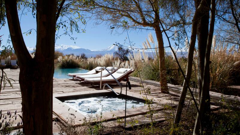 A pasos se San Pedro de Atacama se encuentra este hotel, elegido como uno de los cinco mejores resorts de Sudamérica y que sorprende con sus instalaciones, su piscina de borde infinito con vista a un volcán y su cocina con acento local.