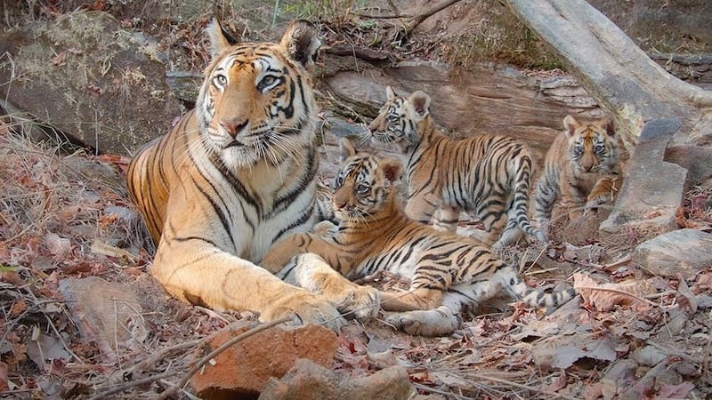 Pero siempre alerta ante los peligros que rondan a los pequeños, entre ellos una pitón hambrienta y el tigre macho que domina el territorio y también podría eliminarlos.
