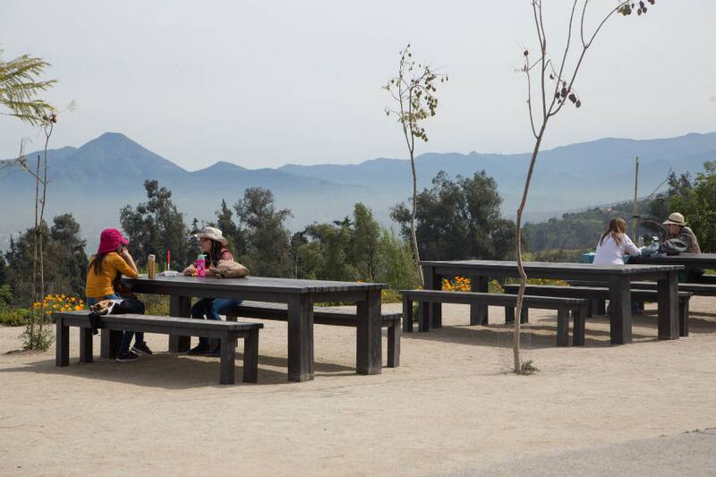 Y si quieres, también puedes sentarte a descansar o comer un pequeño cocaví en las mesas de camping que están en la entrada, donde además podrás visitar la biblioteca abierta al público que tienen ahí mismo.