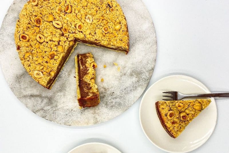 - Pinchar con un tenedor, colocar la base dentro del molde y hornear a 180°C (fuego medio) hasta que esté levemente dorada.