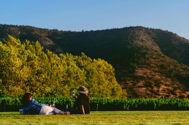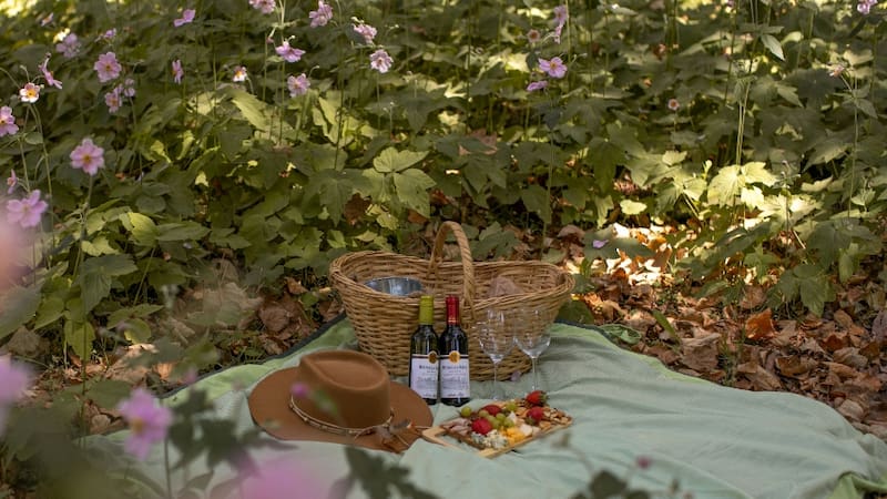 Parte a la 1 PM con un picnic con selección de fiambres y quesos premium, sándwich gourmet y galletitas de cóctel maridados con vinos de la viña, y en medio de su precioso parque de 40 hectáreas.
