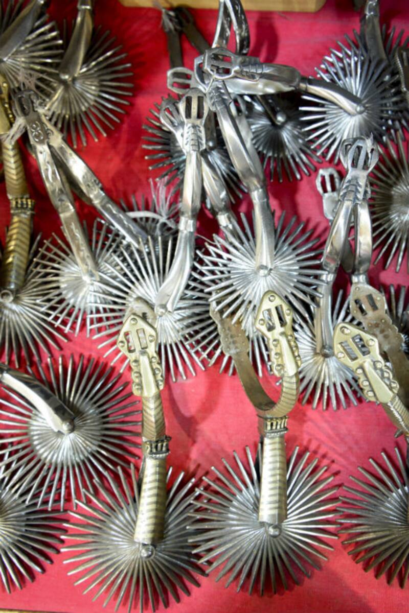 ¿Y las espuelas? Hay más de 20 pares en exhibición, a los que se suman bocados de rienda -la parte que va dentro de la boca del animal-, frenos, frenas y rienderos, adornados con ataujía -especie de bordado o tallado muy fino- de plata y otros metales nobles. También hay piezas históricas, como los estribos del Ejército Patriota encontrados en los campos cercanos a Maipú.