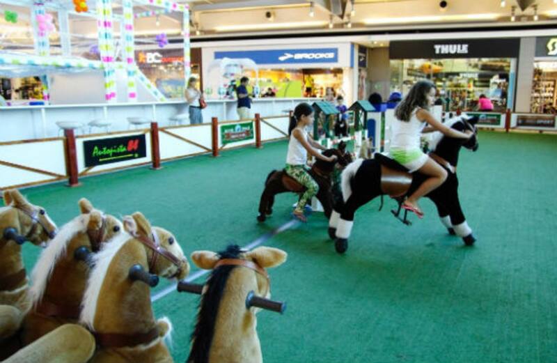 En el primer piso del Mall Sport hay unos caballitos para que los niños se hagan una idea de cómo es subirse a uno de verdad. El lugar se llama Riding Park, la réplica en miniatura de una cancha de salto, con un circuito que pueden recorrer sobre un potro de juguete que se desplaza gracias a pedales y rueditas. Son ideales para niños de entre tres y siete años, pero algunos soportan hasta 70 kilos, así es que es opción para los hermanos de todas las edades, que pueden simular una carrera.