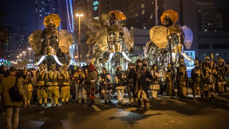 Estos son -tal como revela su nombre- tres elefantes y también aves fénix que atraviesan la ciudad acompañados de un ejército de soldaditos de plomos y de hombres y mujeres vestidos de trajes inspirados en los cinco continentes.