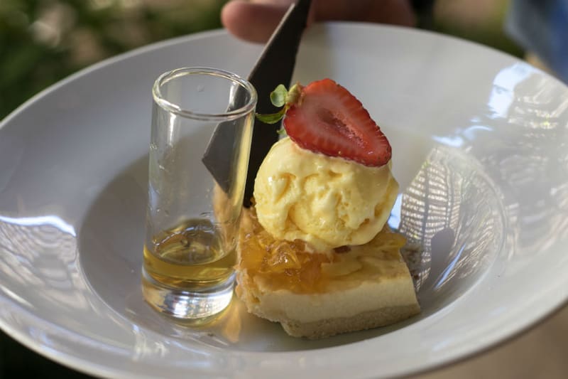 Si es de los que no deja pasar el postre, pida el “cheesecake de papaya” ($ 6.250), de sabor y textura muy suave, y que va acompañado con helado de vainilla y maridaje de Pisco Mistral Nobel.