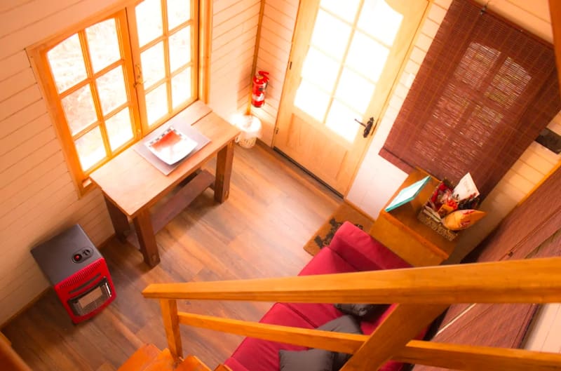 Se trata de un casa tipo "tiny house", es decir, pequeña pero acogedara la vez, que se encuentra en San José de Maipo, en medo de un entorno ideal para desconectarse cerca de Santiago.