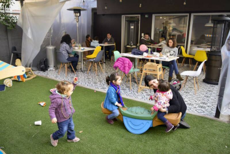 En la terraza de Mazaccone, una cafetería y pastelería que abrió hace dos meses en calle Gerónimo de Alderete, Ignacia y su amiga Claudia toman un té perfumado, de esos que vienen en frasquitos y que uno puede oler para escoger qué variedad quiere probar. Conversan sobre temas domésticos y otros más serios, mientras sus pequeñas hijas, dos de cada una, disfrutan a tres metros de distancia. Las niñas juegan, justo al frente de su mesa, en el jardín del local, donde hay una casa de muñecas, balancines, caballitos de madera y otros elementos dispuestos ahí para que los papás disfruten de la hora del té mientras sus hijos se entretienen, siempre a la vista.