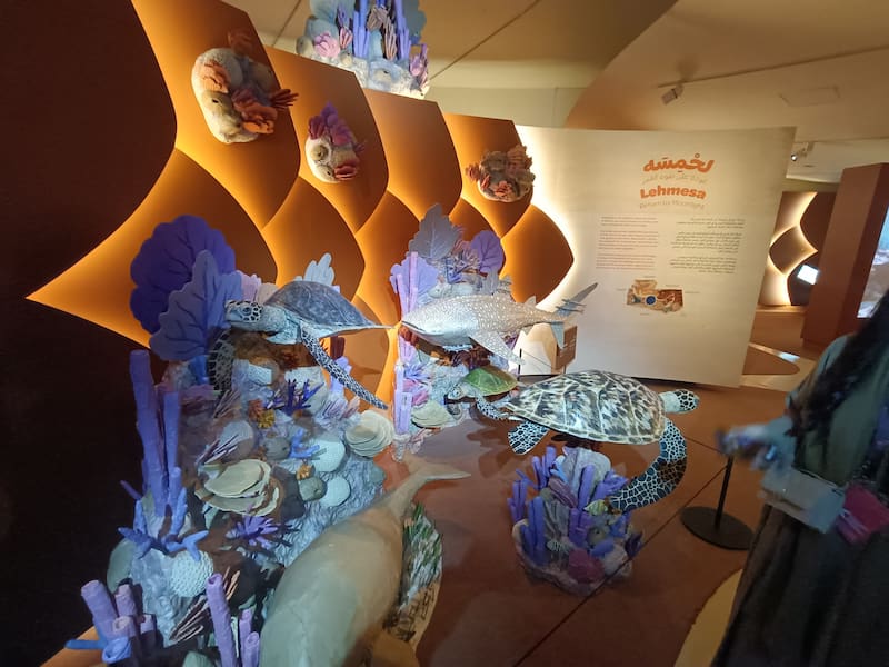 En el segundo piso del edificio central, frente a la tienda de recuerdos y junto al Auditorio Principal, se encuentra “Lehmesa: Return by Moonlight”, una de las exposiciones más recientes del Museo Nacional de Qatar e inaugurada en el marco de sus 50 años. Dedicada a la tortuga carey —la única especie en las costas del país—, mezcla algo de arte, ciencia y recursos interactivos para acercarse a la conservación marina.