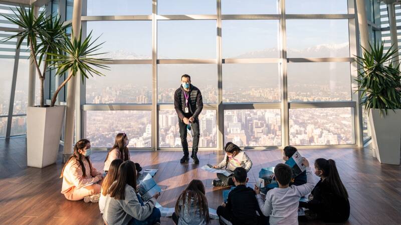 El mirador más alto de Sudámerica espera a los niños y niñas estas vacaciones con tickets 2x1, tours guiados educactivos y la vista más impresionante de Santiago.