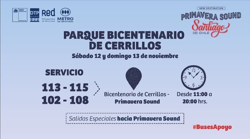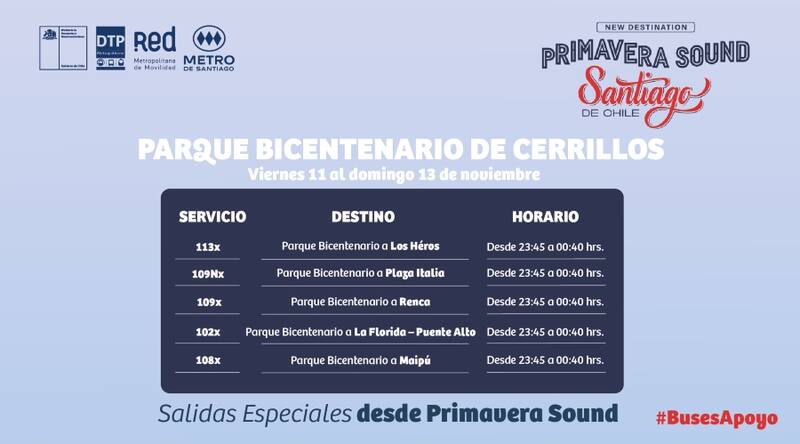 Para los días del festival en Parque Cerrillos, Metro anunció horario extendido en varias estaciones. Además, habrá recorridos especiales de buses Red tanto para ir como para devolverse del evento.