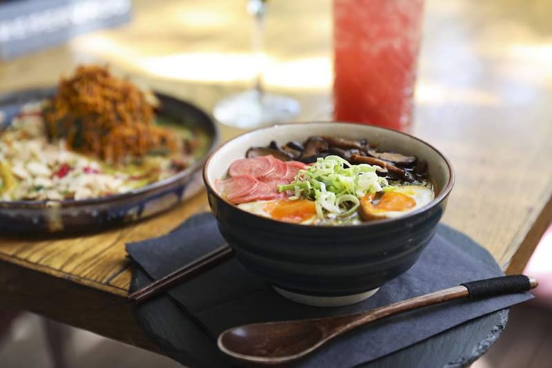 Además del Ramen Violeta ($ 12.500), un caldo de vegetales, fideos de trigo hechos en casa, choclitos, pak choi, diente de dragón, tofu, cebollín y cilantro.
