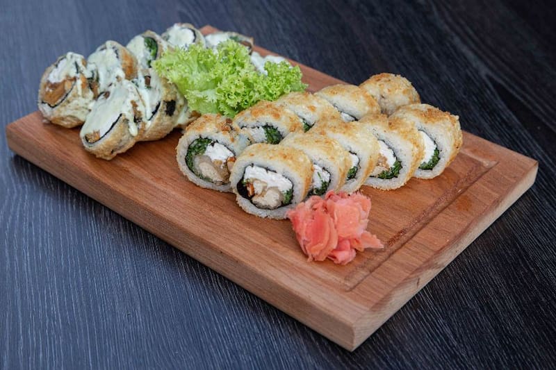 ¿Un ejemplo? El pacifista roll ($ 4.990), con queso crema vegano, tofu y camote, envuelto en mango con sésamo y salsa de maracuyá.