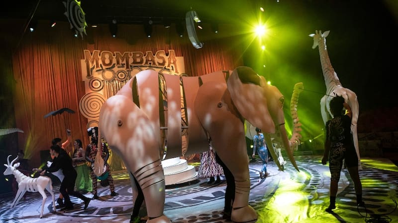 Elefantes, jirafas y camellos, ente otros, que acá puedes ver en marionetas que simulan su tamaño real, en un show tan emotivo como deslumbrante por su despliegue técnico.