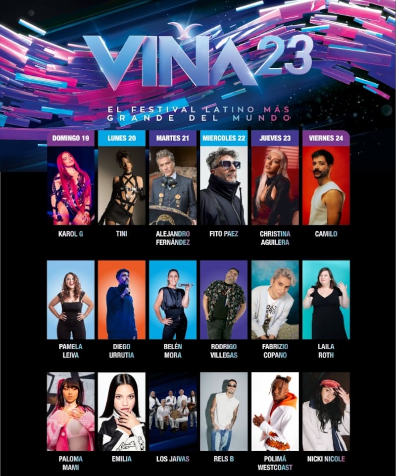 Si no te lo quieres perder, a continuación puedes ver la parrilla de artistas por día de Viña 2023.