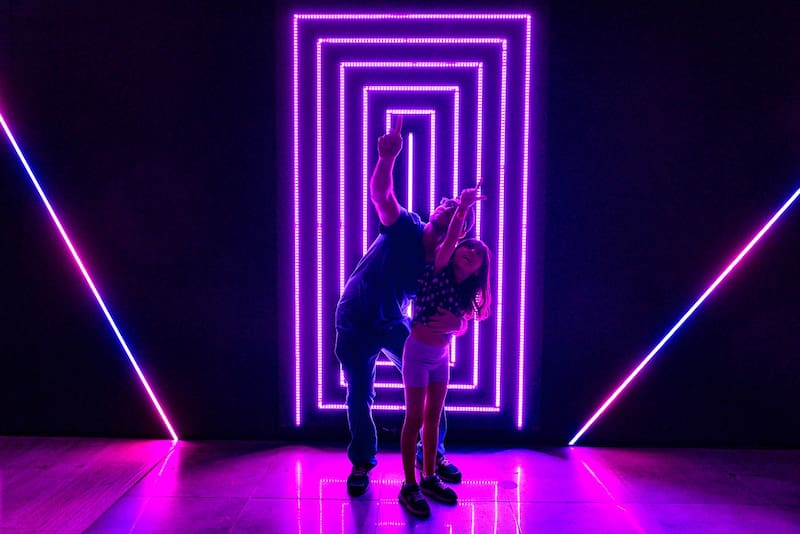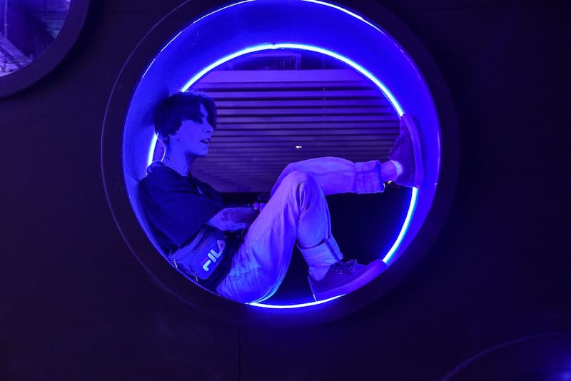 El viaje lleva a los visitantes al “salón rosa”, decorado con columpios, sillones y pizarras para dejar mensajes, y espacios fotográficos en las que el visitante parece estar dentro de una polaroid. Siguiendo el recorrido, la música y los juegos de luces permiten que cada persona se convierta en DJ manejando las luces al ritmo de canciones de moda.