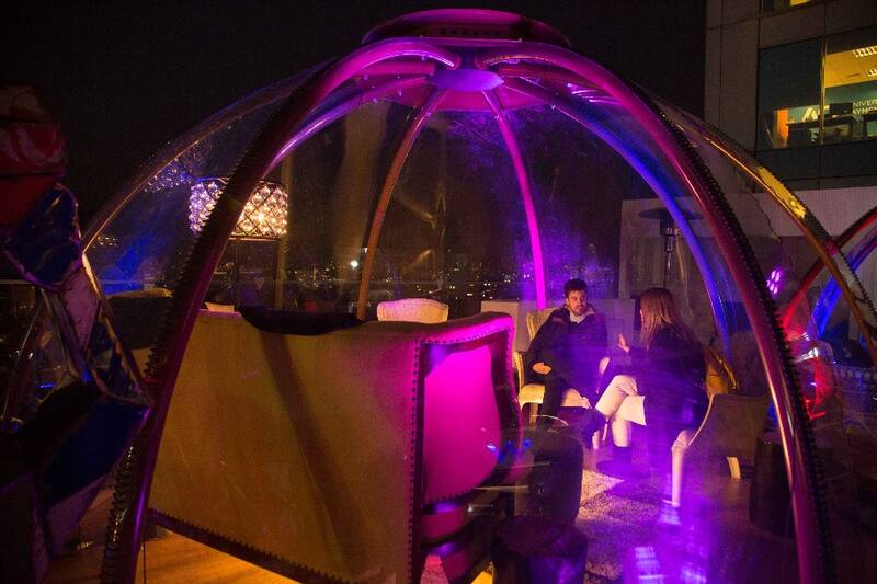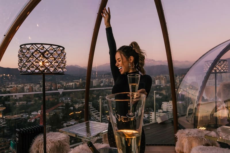 Si subes hasta la terraza en el piso 21 te encontrarás con estos domos transparentes, donde en invierno puedes tomar un cóctel disfrutando del aterdecer y de las mejores vistas de Santiago.