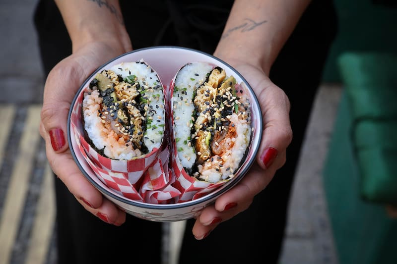 Si vas en grupo a Wabi Sabi puedes probar la Bento Box, como la Ginko ($ 13.000), que trae gyosas, edamame, bao, musubi (seis), que es arroz al vapor, con tofu macerado y horneado.