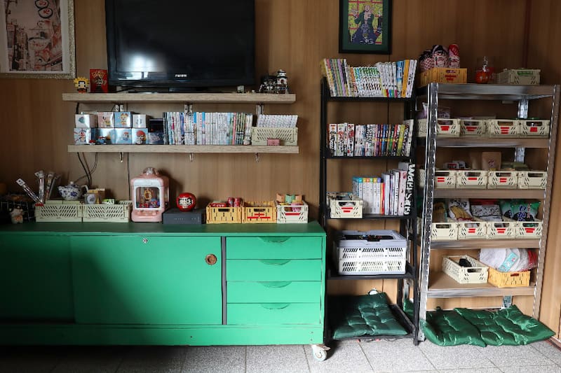 Además, porque cuenta con un espacio interior con un pequeño almacén de productos asiáticos,mangas, e ilustraciones de Pony, y también poleras y bolsas de género con el logo del local.