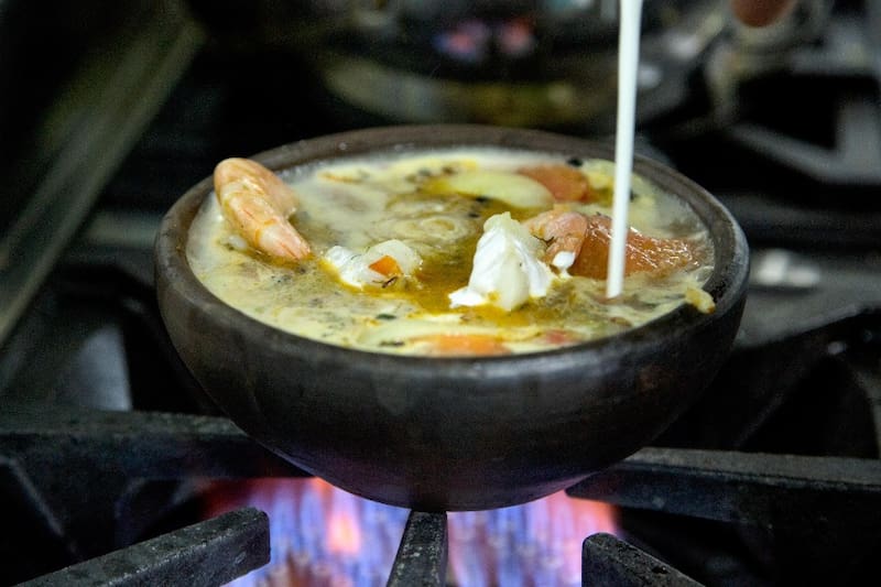 Ahí, Kiriakos Markar, chef de ascendencia griega, cocina un “caldillo de congrio” ($ 7.600), siguiendo la receta de Neruda, es decir con ajo, cebolla, tomate, camarones y un chorrito de crema, el secreto del poeta para que quede más sabroso.