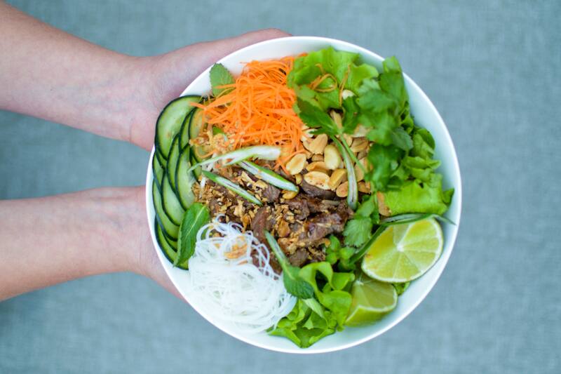 También la ensalada Bín Bo Xao ($ 5.200), un plato típico vietnamita, en base a lechuga, carne salteada, pepino, zanahoria, diente de dragón, hojas de cilantro, vermicelli de arroz y maní tostado.