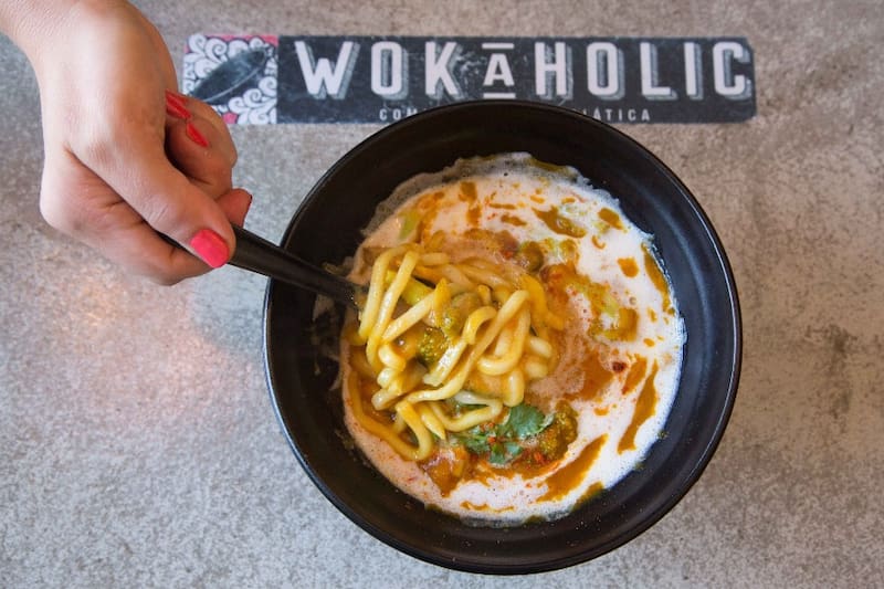 Y como te contamos, en Wok a Holic hay platos que fusionan distintos sabores del continente asiático, como los "Coconut curry udon" ($ 5.500), un tipo de fideo de trigo más grueso y suave, típico de la cocina japonesa, con curry, vegetales salteados y crema de coco.