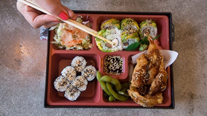 En Wok a Holic, hay "lunch box" ($ 6.990), menú del día o Teishoku, al estilo japonés, que es una bandeja -como la de la foto principal-, con distintas divisiones y platos que cambian día a día.