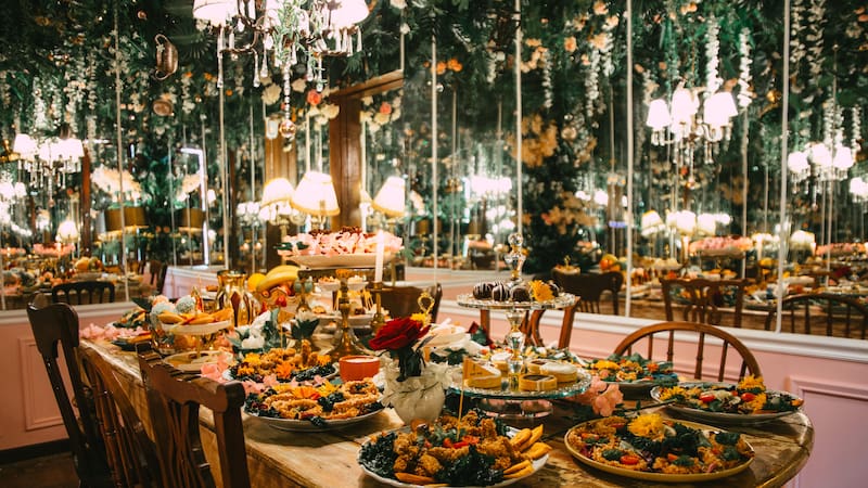 La idea es que vayas a vivir una experiencia: en el Secret Room te reciben con un enorme banquete de comida, que es sorpresa e incluye un menú principal, postres, aperitivos dulces y salados y jugo y té ilimitado.