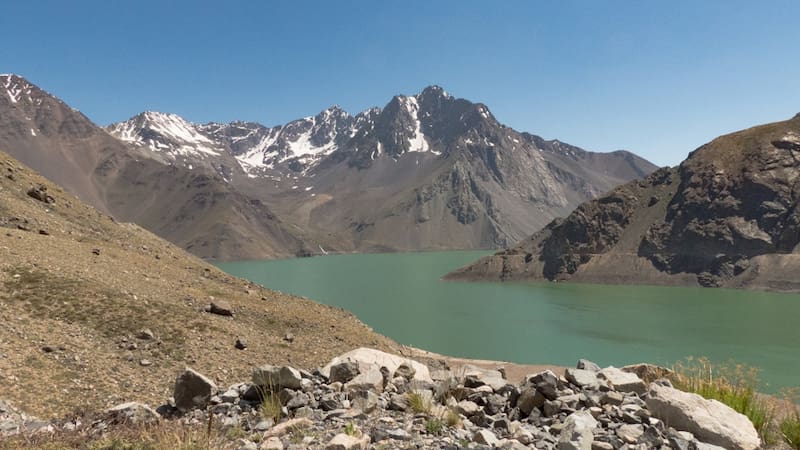 En el Cajón del Maipo y a 3.000 msnm se encuentra el Embalse El Yeso, uno de los principales atractivos turísticos de la montaña en Región Metropolitana.
