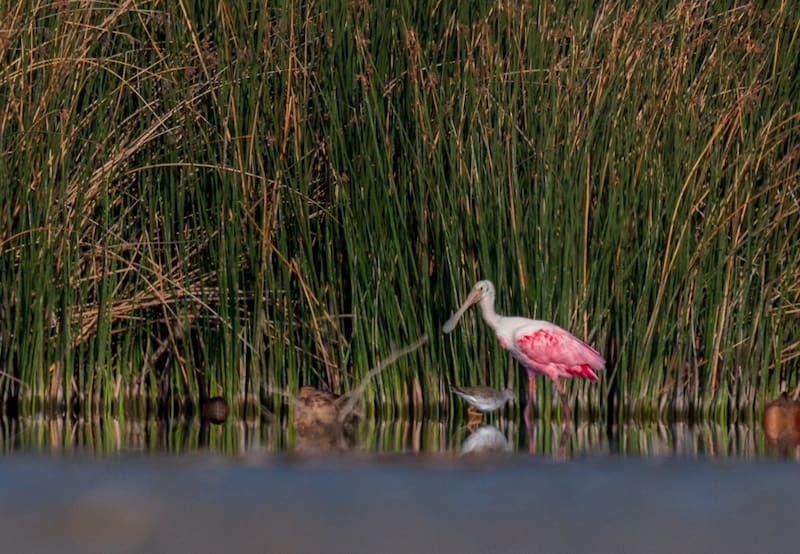 Además, a veces aparecen en el Humedal Batuco otras que son verdaderas rarezas, como ocurrió hace algunos veces, cuando algunas personas avistaron ahí a la espátula (en la foto superior), un impresionante flamenco de color rosado muy difícil de encontrar en Chile.