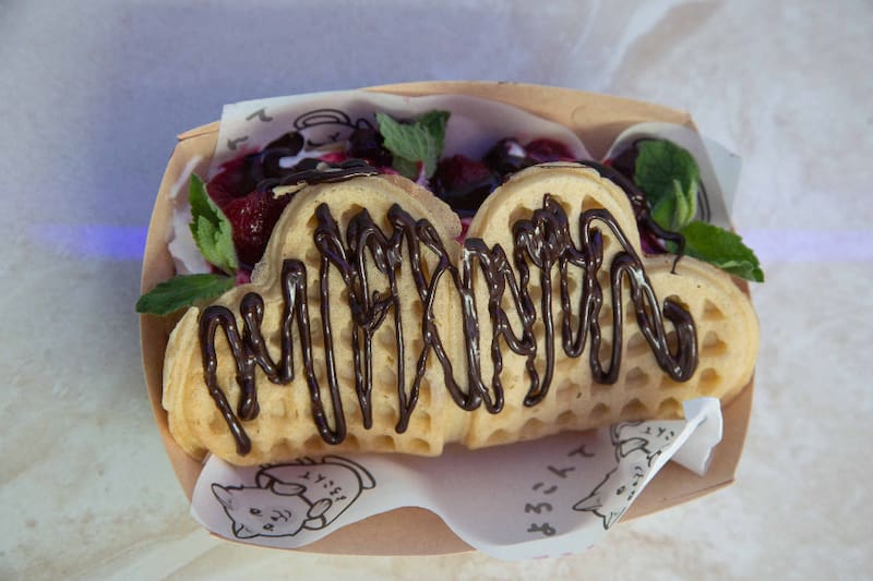 ¿Y qué hay que probar en Yorokondo? Uno de sus hits, los waffles en forma de corazón, como el Mononoke ($ 4.500), con ganache de chocolate, compota de frutillas y crema chantilly; o el Arrietty ($ 3.500), con piña fresca, mango, crema chantilly, láminas de coco y miel de palma.