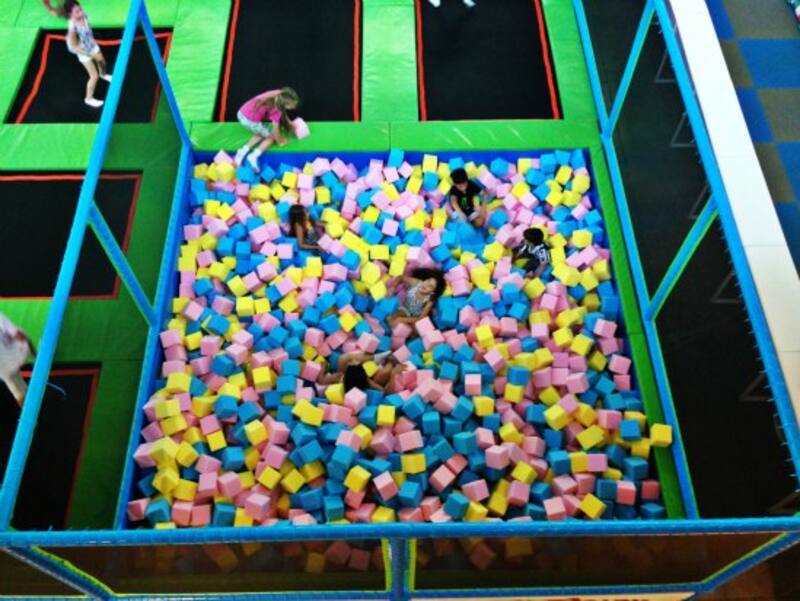 El gran remate final lo pueden dar los niños saltando sobre una piscina de 22 m2 llena de cuadrados de espuma de colores, que está al lado de una de las camas elásticas. El único requisito es usar calcetines y andar con un adulto responsable.