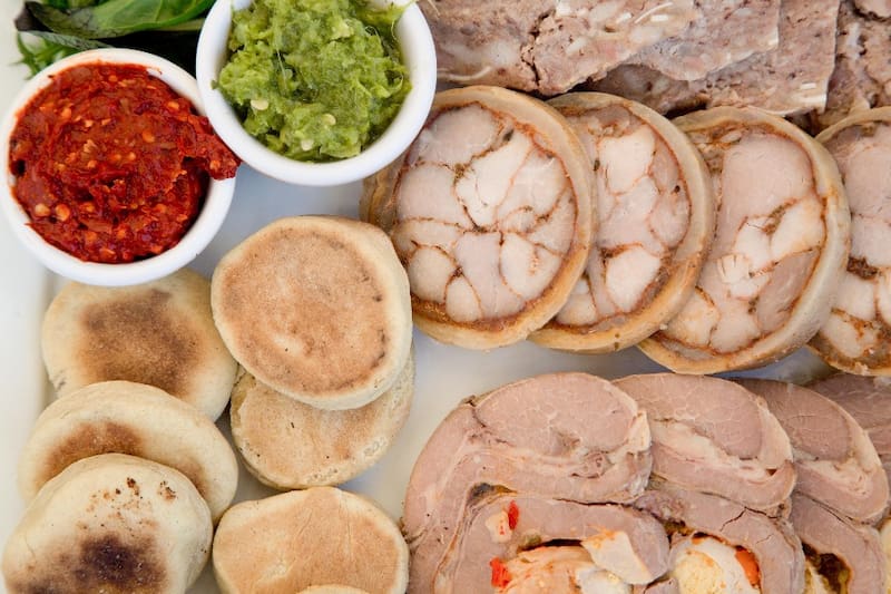 Como la "tabla de la casa" ($ 13.600), una maravilla que viene con churrascas, queso de cabeza casero, malaya, arrollado de chancho, salsa de ají verde y pasta de ají ahumado.