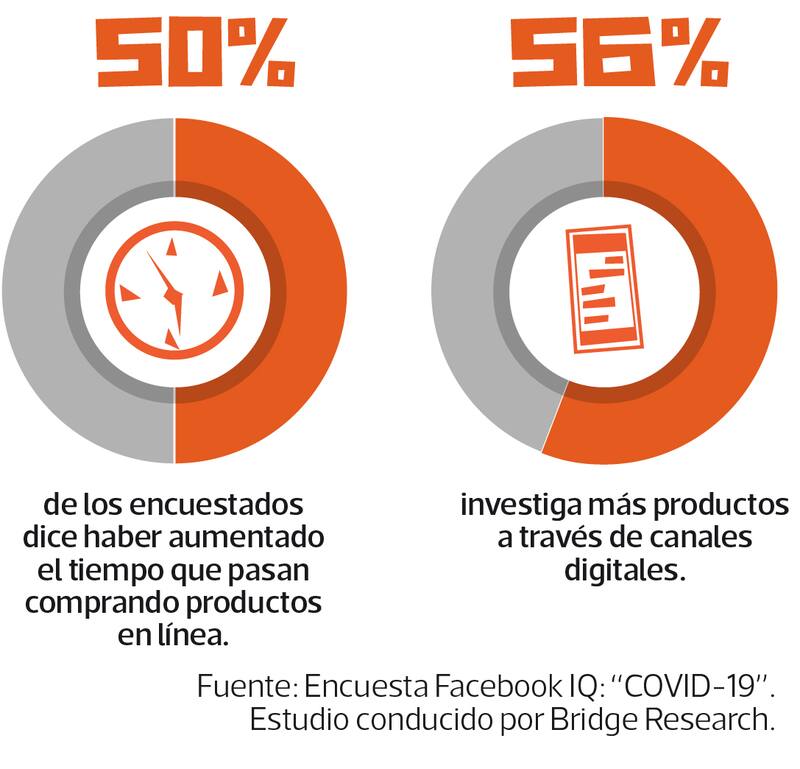 Según el sitio de compras y ventas en línea, Mercado Libre, los intereses han ido cambiando en función a la “etapas” de la pandemia: Una primera etapa fue de “prevención”, con un aumento en las categorías de Industrias y Oficinas, y Salud y Equipamiento médico, con productos como alcohol en gel, mascarillas, termómetros y antibacteriales. La segunda etapa fue la de abastecimiento, marcada por consumo de categorías como consumo masivo y alimentos, con productos de limpieza, higiene, alimentos y bebidas. Y la tercera etapa ha sido la de permanencia, marcada por el crecimiento de categorías asociadas al estar en casa.