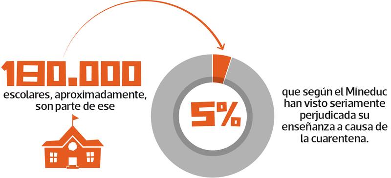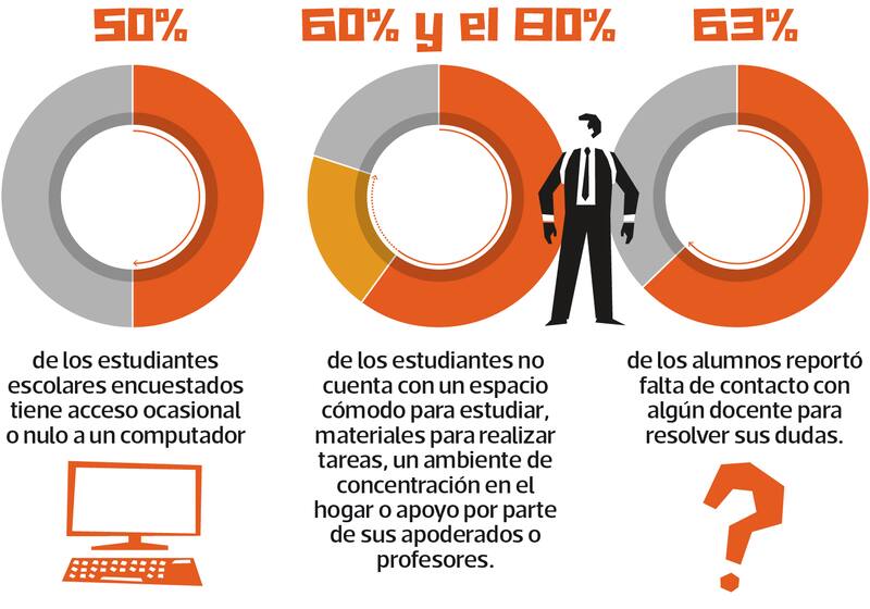 Según información entregada por el Mineduc a la Universidad de Harvard y la Ocde, para una encuesta realizada en 59 países, el 30% de la población escolar estaría recibiendo buena parte de los aprendizajes, mientras que el 60% estaría recibiendo solo una parte. Solo un 5% estaría accediendo a todo el currículum, gracias a las diversas medidas de apoyo de los colegios y del Mineduc y otro 5% de los escolares no accede a nada o casi nada de la enseñanza que debía recibir.